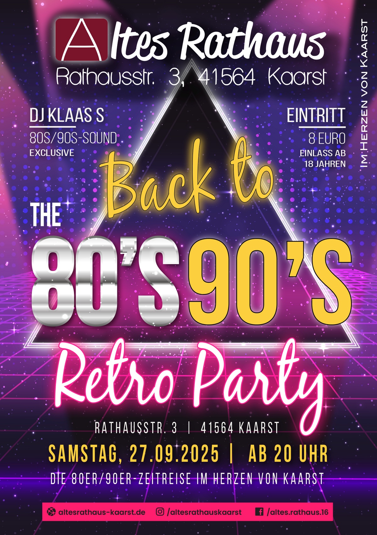 🎉 BACK TO THE 80s & 90s! 🎶Am Samstag, 27.09.2025 ab 20 Uhr wird das Alte Rathaus Kaarst zum Retro-Hotspot! 🕺💃 🔊 Mit dabei: DJ Klaas S. & die besten Hits aus den 80ern & 90ern!🌈 Dresscode: BUNT & VERRÜCKT – je schriller, desto besser! 🌈 🎟️ Tickets ab im […]