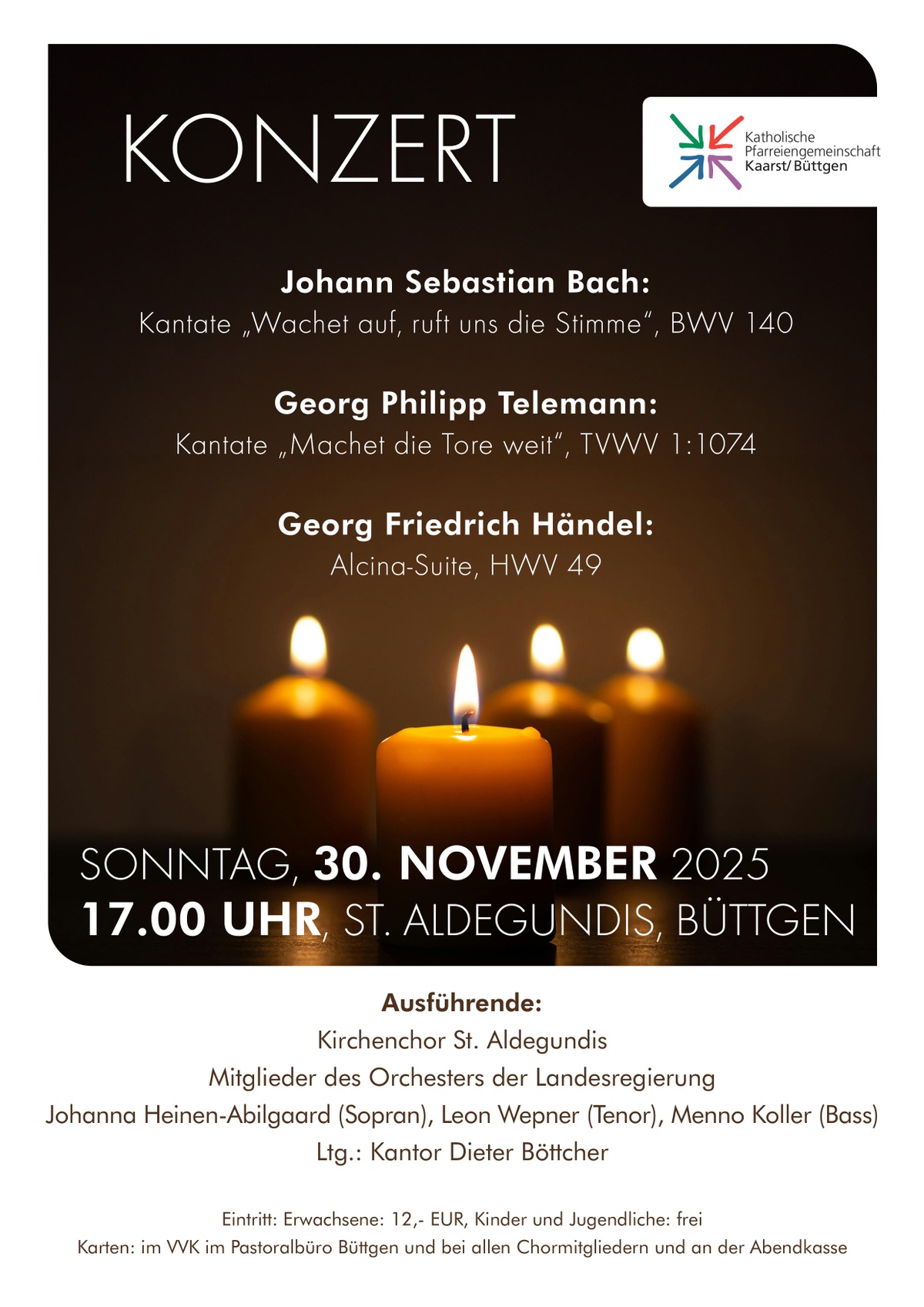 Karten: im VVK im Pastoralbüro Büttgen und bei allen Chormitgliedern und an der Abendkasse